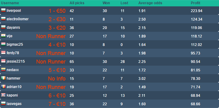 Last but not least we have a screenshot with the winners for the Neteller Tipster Competition.