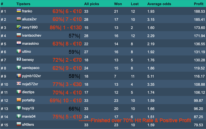To explain Pro 300 Tipster Competition, we will give the prizes in order for over 70% Hit Rate and after we will drop to over 60% Hit Rate and take it from the top.