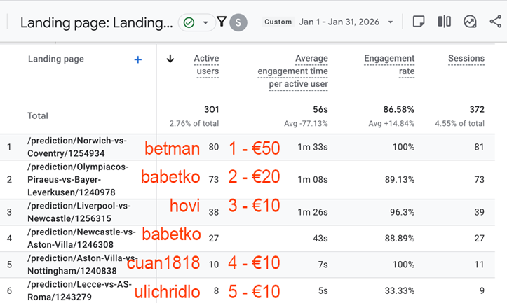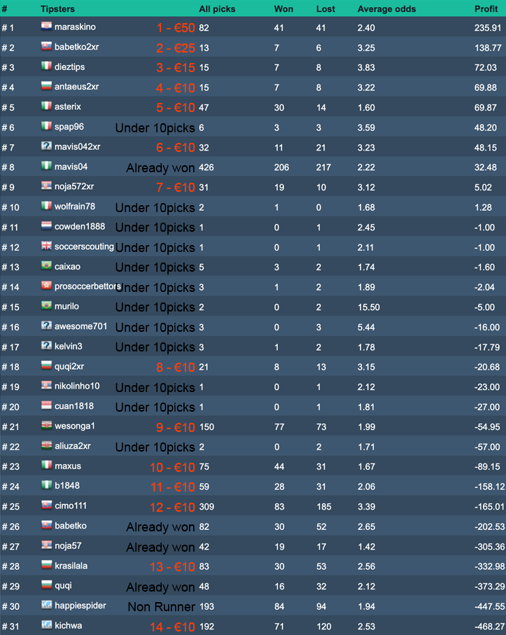 Here are the Tipster Competition Winners for 01-2026 for the Active Tipster Competitions.