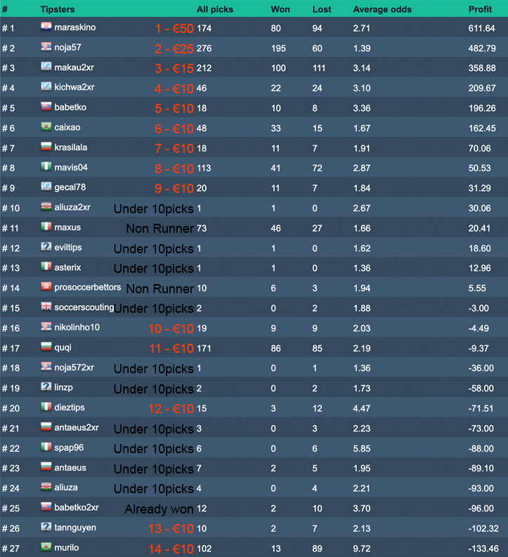 To explain Pro 300 Tipster Competition, we will give the prizes in order for over 70% Hit Rate and after we will drop to over 60% Hit Rate and take it from the top.