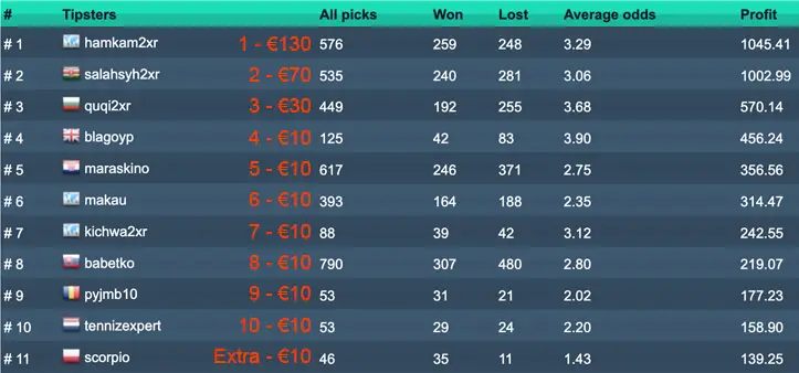 To explain Pro 300 Tipster Competition, we will give the prizes in order for over 70% Hit Rate and after we will drop to over 60% Hit Rate and take it from the top.