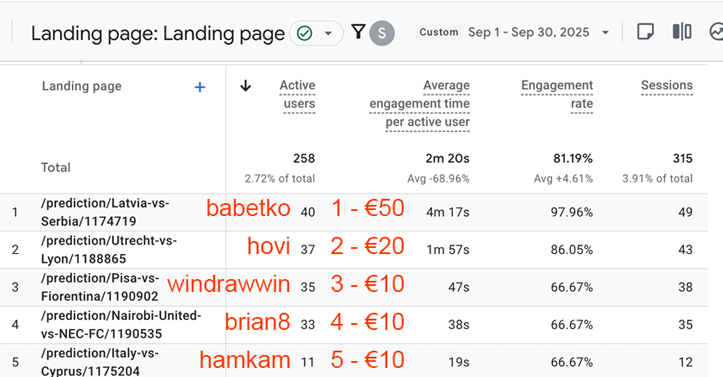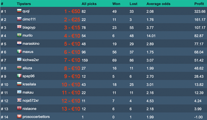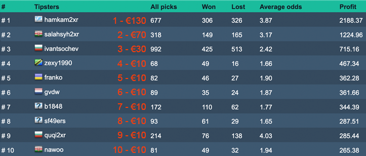 Here are the Tipster Competition Winners for 09-2025 for the Active Tipster Competitions.